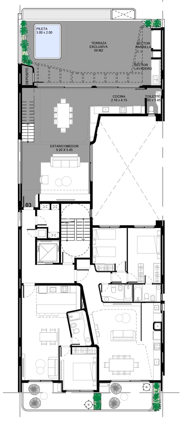 Su localización estratégica conecta de forma inmediata con los principales puntos de la ciudad. A metros de Av. Pellegrini—con su reconocido corredor gastronómico, bares y cafés—y a pocos minutos del Parque Independencia y Boulevard Oroño, ofrece una experiencia urbana dinámica, conectada y vinculada al esparcimiento, la movilidad y la vida al aire libre.