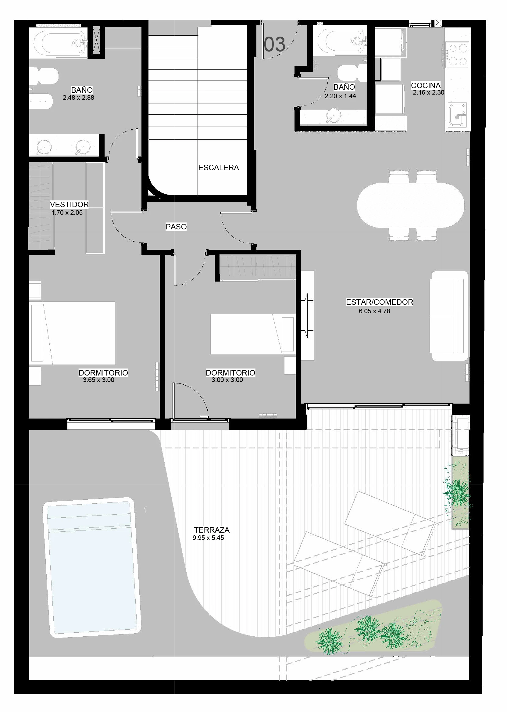 Montevideo 961 ofrece una propuesta versátil, con una amplia variedad de unidades que van desde departamentos de un dormitorio hasta opciones de tres dormitorios. Sus diseños contemporáneos y funcionales priorizan el confort y la adaptabilidad, acompañando distintos estilos de vida. El edificio cuenta con 25 unidades distribuidas en 9 pisos, brindando alternativas pensadas para responder a diversas necesidades y preferencias.