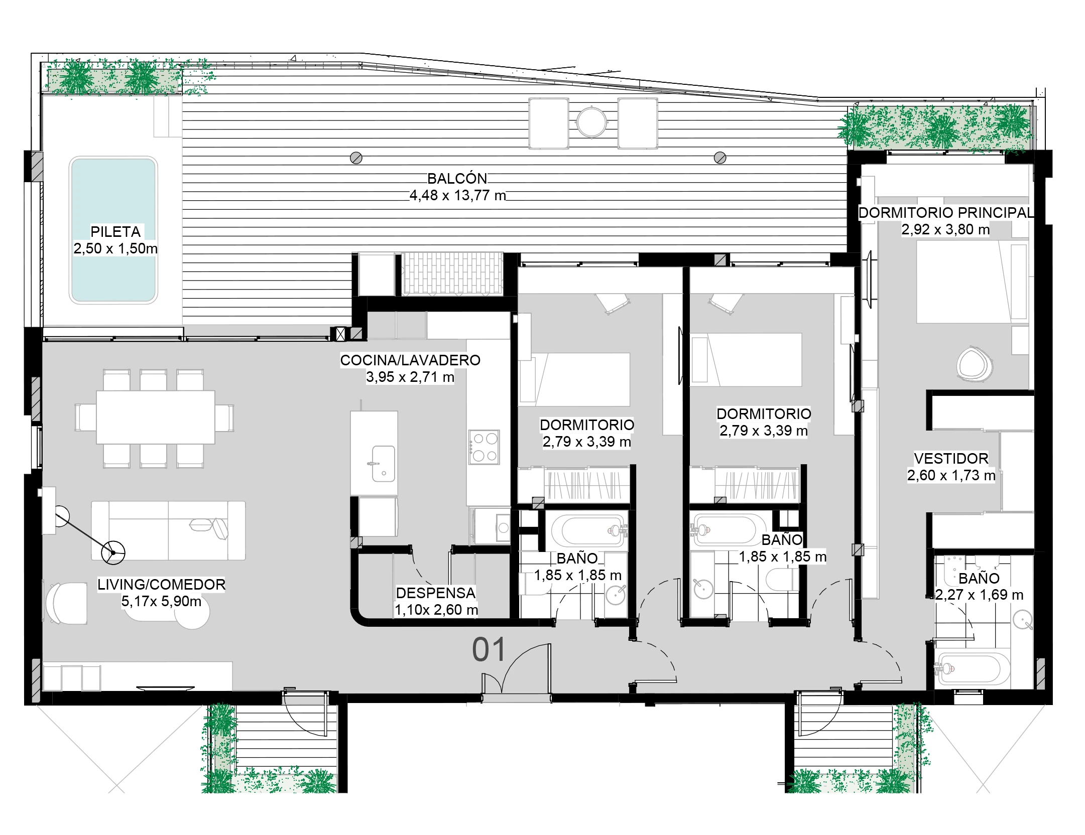 Moreno 320 se destaca por su amplia variedad de unidades, que van desde departamentos de un dormitorio hasta opciones de tres dormitorios. Con diseños contemporáneos y funcionales, cada unidad esta pensada para adaptarse a los diferentes estilos de vida. El edificio, compuesto por 60 unidades distruibuidas en 2 torres de 9 pisos, ofrece opciones que se ajustan a todos los gustos y necesidades.